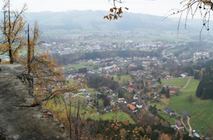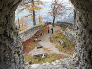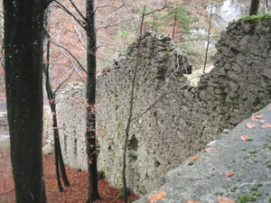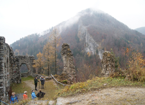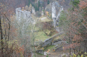 auf Scharnstein und zum unteren Teil der Burgruine.