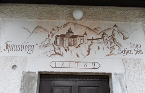 Dieses Wandbild über der Tür eines Hauses am Weg unterhalb der Ruine