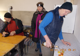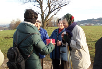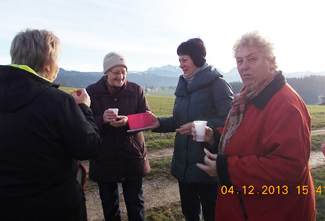 und wärmende Getränke für alle aus ihren Rucksäcken.