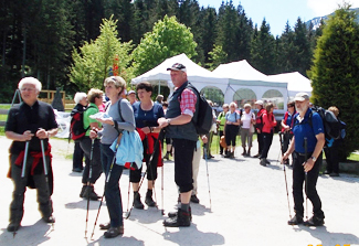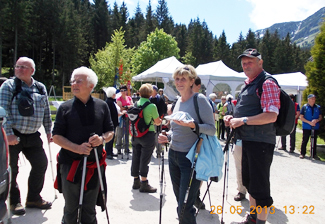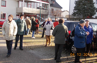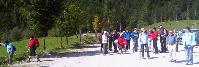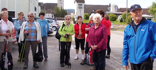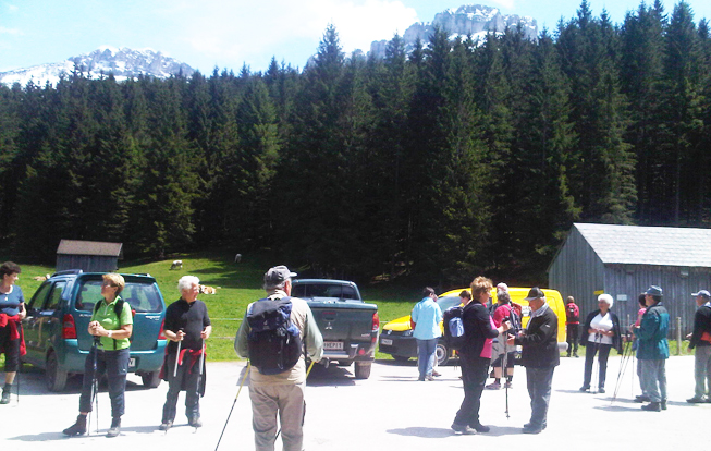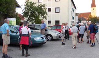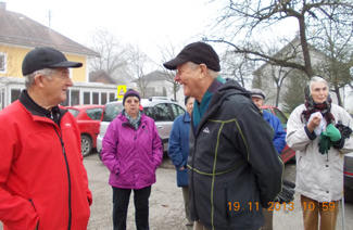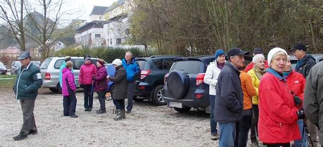 Die gemütlichen Wanderer trafen sich wie üblich am Gemeinde-Parkplatz . . .