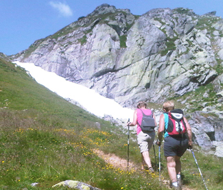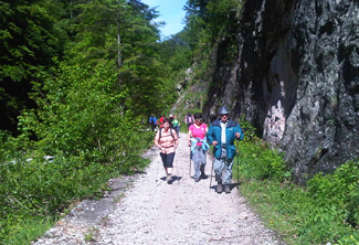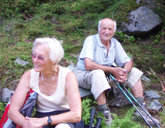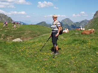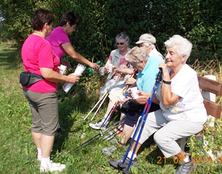 Maria hat für die Wanderer immer etwas Trinkbares in ihrem Rucksack.