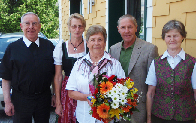 . . . auf unserem Foto mit den Gratulanten Pfarrer KonsR. P. Burkhard Berger,
