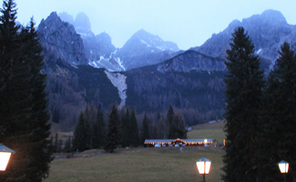 Foto rechts oben: Blick "hinauf" zur beleuchteten Unterhofalm.