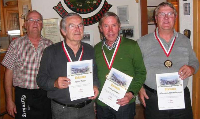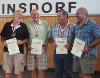 Oberschützenmeister Herbert Hahn mit den Bestplazierten Klaus Knopp (Ohlsdorf),