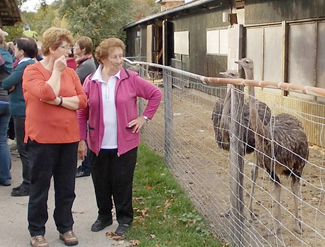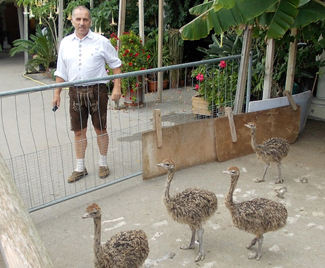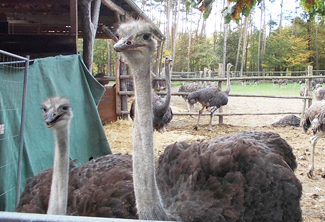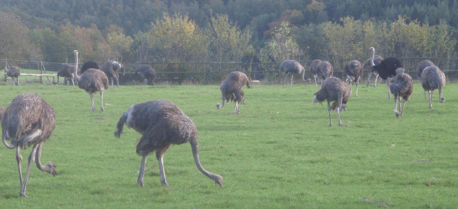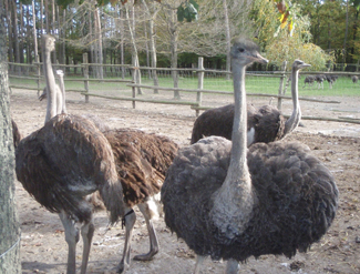 Hier tummeln sich in einem riesigen Freigehege über 300 Strauße.