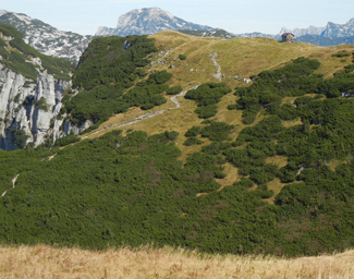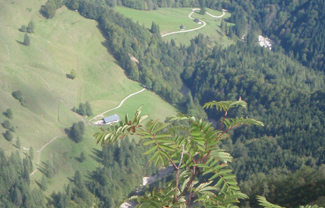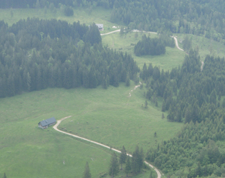Wenig später blicken wir schon zur Bräuningalm (Bildmitte)