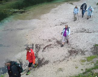 Die andere Gruppe geht durch felsendurchsetztes Gelände . . .