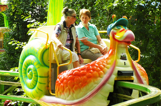 Unten: Unsere Reisereferentin Vroni Bacher und unser "Leib-Chauffeur " Manfred.