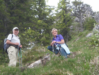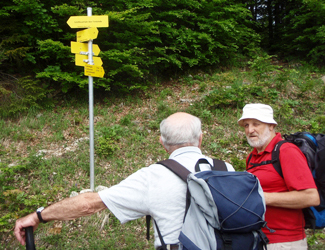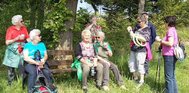 Kurze Rastpause auf dem Hacklberg-Höhenweg.