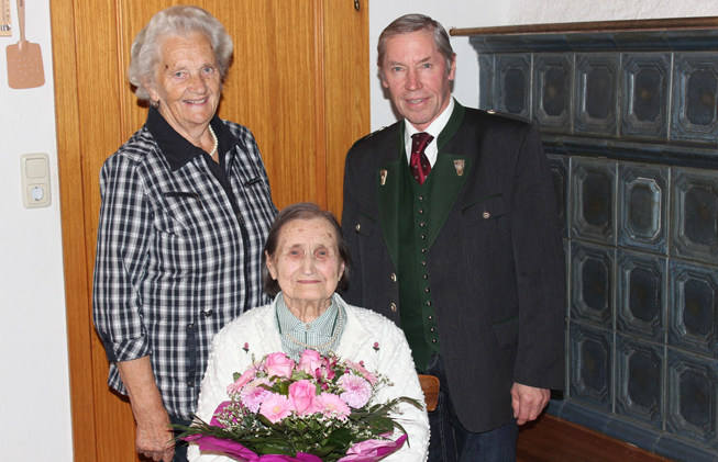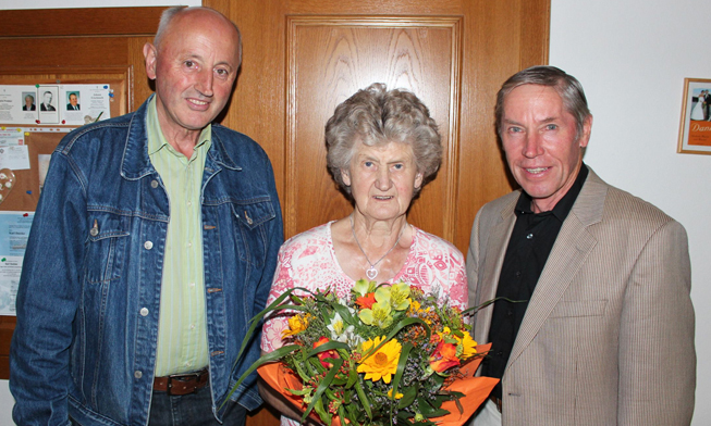 Unser Bild zeigt die Jubilarin mit Obmann Franz Bieregger (rechts)