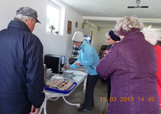 Wir bekommen Kaffee und Mehlspeisen in ihrem Haus.