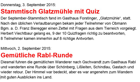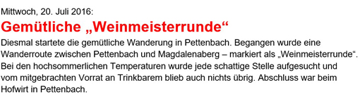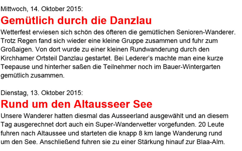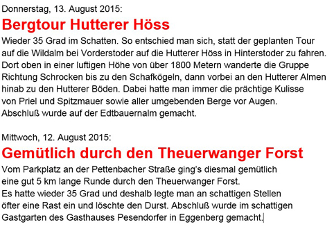 Erstmals hatte man sich heuer entschlossen, die gemütlichen Wanderungen im Sommer