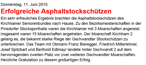 Sehr erfreulich war heuer wieder das Abschneiden der Asphaltstockschützen des Kirchhamer
