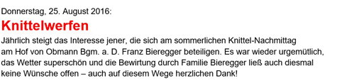 Donnerstag, 10, August 2017 Knittelwerfen