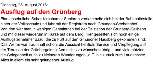 bis Traunkirchen (inkl. Kaffee und Kuchen) und anschließend mit dem Zug wieder retour.