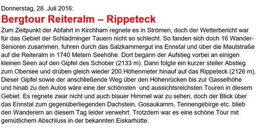 18 TN fanden sich um 6 Uhr am Parkplatz(Sportplatz) ein, um eine Wanderung zur Rinnerhütte , den Wildensee und auf den Rinnerkogel zu machen. Vom Parkplatz am Offensee ging es den See entlang bis zum Einstieg zur Rinnerhütte und zum Wildensee oder auf den Rinnerkogel