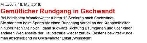 13 SeniorInnen (inkl. Jung-Senior Patrick) spazierten vom Gasthaus Dickinger den bezeichneten