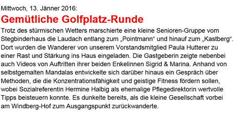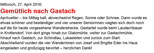 Wir möchten uns bei dieser Gelegenheit auch bei unseren Wanderreferenten Gerti Beiskammer, Traude Trausner und Walter Spitzbart für die schönen und teils anspruchsvollen Wanderungen (Touren) recht herzlich bedanken.
