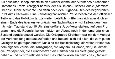 Dort angekommen, erwartete uns im Festzelt schon Marc Pircher mit seiner Musik. Nachdem wir uns bei Speis & Trank gestärkt hatten, ging es wieder zurück nach Kirchham.
