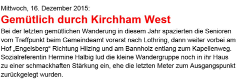 12.12.2018: Gemütliche Wanderung in Kirchham.