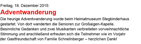 20.12.2018: Adventwanderung zur „Groß Aigner“ Kapelle.