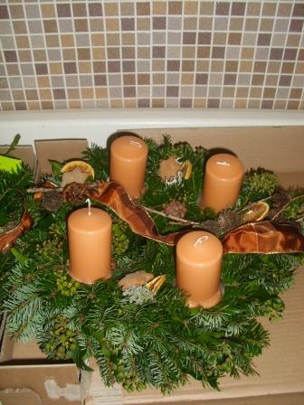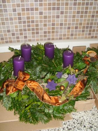 Viele Adventkränze wurden auf Bestellung angefertigt und so bekam auch Herr Putz (Glas Putz, Gmunden) einen wunderschönen, 60 cm großen Adventkranz.