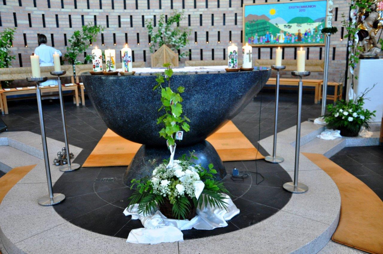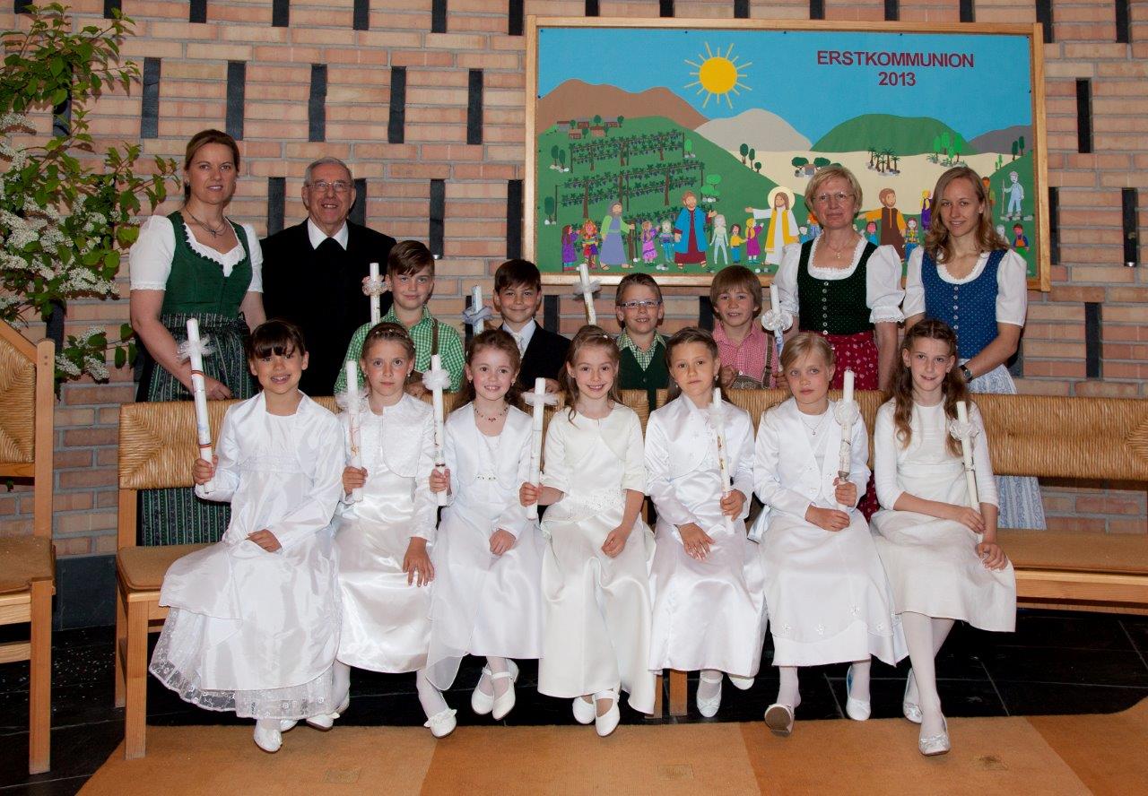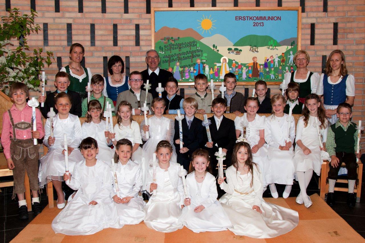 Zu Christi Himmelfahrt empfingen 24 Mädchen und Buben in unserer eindrucksvollen und zum Thema passend geschmückten Pfarrkirche das Sakrament der Erstkommunion. Die Erstkommunionkinder haben sich gemeinsam mit ihrer Religionslehrerin Frau Buchegger, den Klassenlehrerinnen und den Tischeltern in den letzten Monaten mit viel Begeisterung zum Thema „Ich bin der Weinstock und ihr seid die Reben“ vorbereitet. Auch in der Predigt von Herrn Pfarrer stand dieses heurige Motto im Mittelpunkt. Er strich dabei die innige Verbundenheit und Freundschaft Jesu mit den Menschen hervor, die bereits bei der Taufe begonnen hat. Durch die Erstkommunion soll diese enge Beziehung zu Christus vertieft und gefestigt werden.
