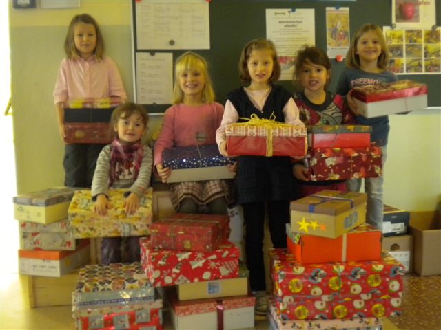 Auch heuer beteiligten sich die Volksschüler an der Aktion "Weihnachten in der Schuhschachtel".