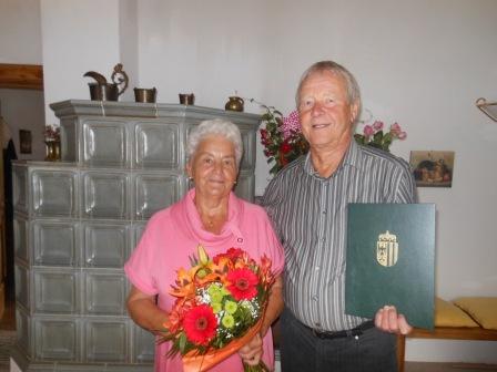 Karl und Margaretha Lederer, Danzlau 20 konnten kürzlich bei bester Gesundheit das Fest der Goldenen Hochzeit feiern. Die beiden haben sich vor 43 Jahre in Kirchham angesiedelt, sind gebürtige Linzer und fühlen sich bei uns sehr wohl. Als Karl Lederer seine Frau Margaretha das erste Mal im Jahr 1968 in die Danzlau mitgenommen hat, meinte Frau Lederer "da zieht sie nie her" – und jetzt 43 Jahre später würde sie um nichts mehr in der Welt nach Linz ziehen! Das Ehepaar Lederer ist sehr aktiv beim Seniorenbund dabei und hat viele Freunde in Kirchham und der Hagenmühle gefunden. Bürgermeister Hans Kronberger überbrachte die besten Glückwünsche seitens der Gemeinde und wünscht dem Jubelpaar noch viele gemeinsame Jahre hier in Kirchham. Auch wir schließen uns den Glückwünschen an. |