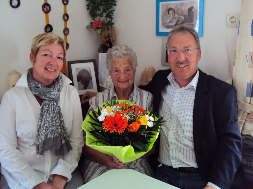 Bürgermeister Johann Kronberger und GR Elisabeth Huemer gratulierten Frau Buchegger, Im Tal, sehr herzlich zu ihrem 80. Geburtstag |