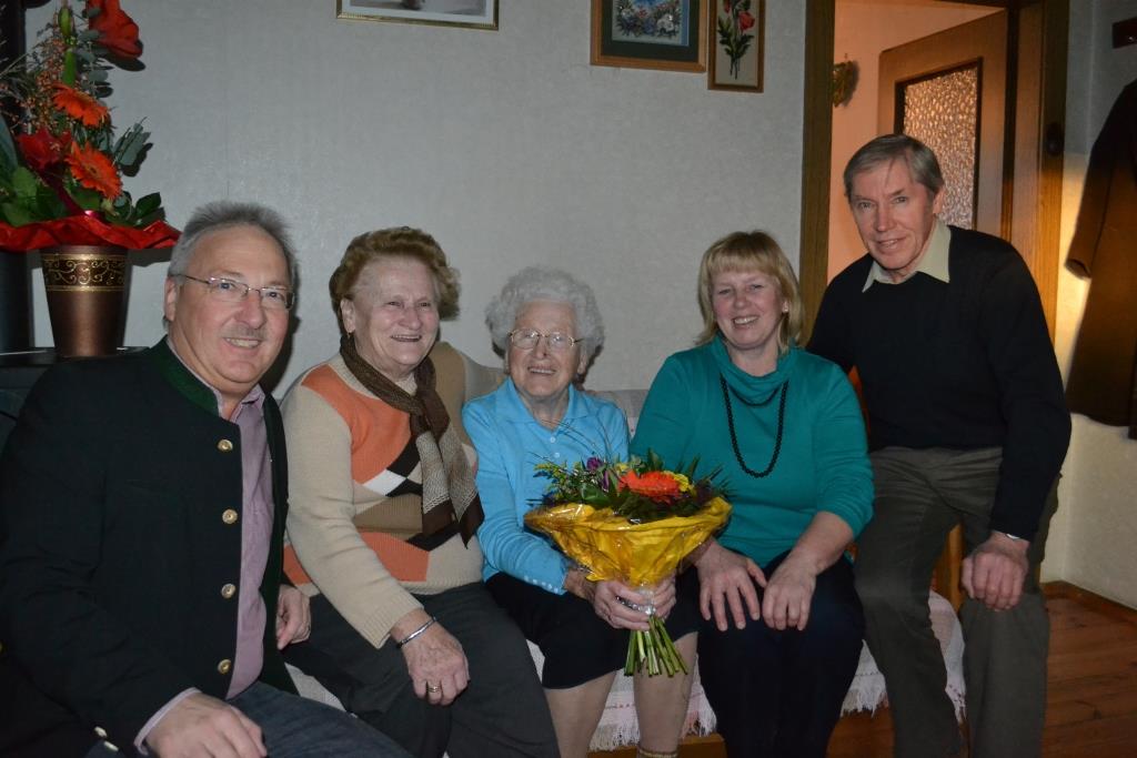 Zum 90. Geburtstag von Frau Maria Kronberger, Kirchham 6 überbrachten Bgm. Hans Kronberger und Gemeinderätin Anneliese Hutterer die Glückwünsche der Gemeinde. Vom Seniorenbund gratulierten Obmann Bgm. aD Franz Bieregger und Sprengelbetreuerin Hermine Freund. Außer einer Sehschwäche erfreut sich die Jubilarin trotz ihres hohen Alters tatsächlich bester Gesundheit und nimmt noch sehr rege am Dorfgeschehen teil. Bei der gemütlichen Feierstunde in ihrem Haus erwähnte daher Bürgermeister Kronberger, dass Frau Kronberger zwar „nur“ die zweitälteste Kirchhamerin sei, aber dank ihres „Rennwagens“ ganz sicher die schnellste 90iger im ganzen Ort. Herzlichen Glückwunsch und weiterhin viel Gesundheit und Lebensfreude!