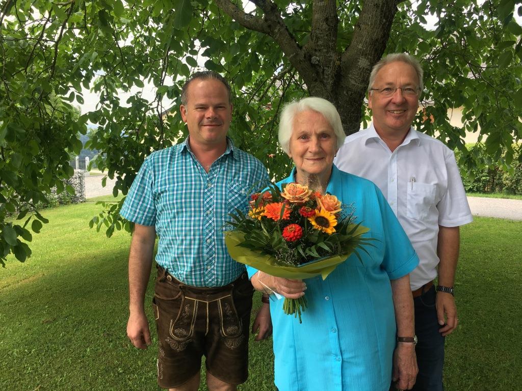 Bei bester Gesundheit konnte Frau Maria Rumpl, Wahl 24 ihren 90. Geburtstag feiern. Die rüstige Altbäuerin vom „Hanniesen“, die schon im Alter von 31 Jahren ihren Ehemann verlor und ihre 5 Kinder allein großziehen musste, freut sich heute ganz besonders über den Zusammenhalt ihrer großen Familie (5 Kinder, 25 Enkerl und 14 Urenkerl) und interessiert sich noch sehr für das Dorfgeschehen. Die Glückwünsche und Geschenke der Gemeinde überbrachten Bürgermeister Hans Kronberger und Gemeindevorstand Günter Hartleitner.