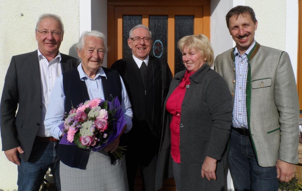 Am 10. Oktober feierte die „Kirchenbäuerin“ Aloisia Söllner ihren 90. Geburtstag. Die erfrischend-rüstige Jubilarin erfreut sich trotz des hohen Alters bester Gesundheit und ist am Welt- und Dorfgeschehen höchst interessiert. Als Gratulanten stellten sich neben ihrer Familien, den Geschwistern und der Nachbarschaft auch Pfarrer P. Burkhard Berger sowie Bürgermeister Hans Kronberger, Vizebürgermeister Anton Pühringer und Gemeinderätin Anneliese Hutterer und überbrachten Glückwünsche und kleine Präsente.