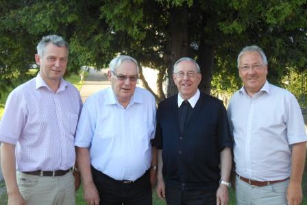 Im Kreise seiner Familie feierte Tischlermeister Johann Spitzbart, Kirchham 47, seinen 80. Geburtstag im Gasthaus Bauer. Bürgermeister Hans Kronberger überbrachte die Glückwünsche der Gemeinde und bedankte sich beim überaus rüstigen Jubilar für seine jahrzehntelange erfolgreiche Tätigkeit als Unternehmer wie auch für seine ehrenamtliche Öffentlichkeitsarbeit für die Gemeinde Kirchham und verschiedene Vereine. Foto (Gemeinde Kirchham): v.l.n.r.: Landesinnungsmeister GV Gerhard Spitzbart, Jubilar Johann Spitzbart, Pfarrer P. Burkhard Berger und Bürgermeister Hans Kronberger