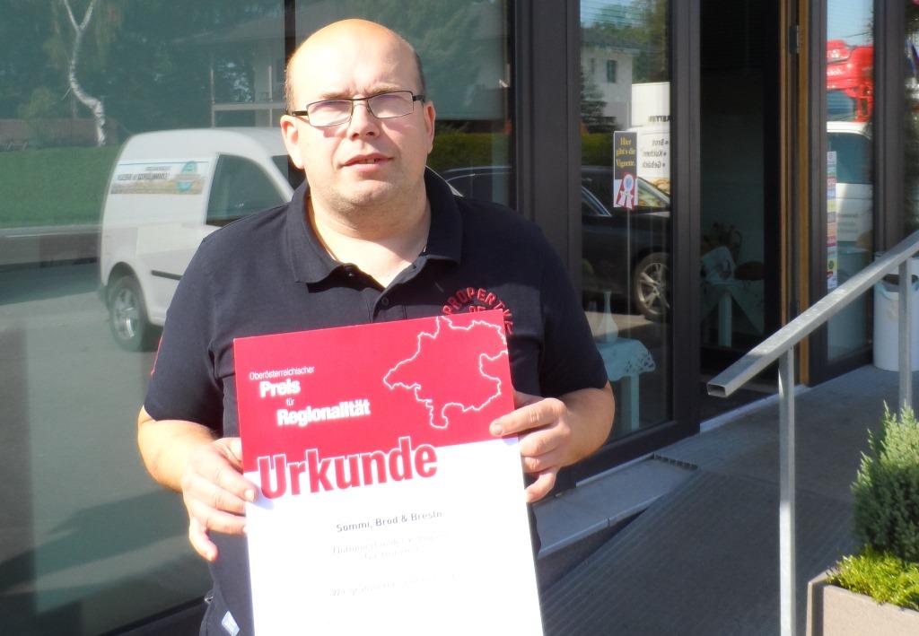 Eine besondere Auszeichnung erhielt unser Bäckermeister Norbert Neuwirth im September von der Wochenzeitung "Bezirksrundschau". Der Chef der Bäckerei "Semmel, Brod und Bresln" wurde als erfolgreicher Nahversorger in unserer Gemeinde und für die hohe Qualität seiner Lebensmittel mit dem 2. Platz beim oberösterreichischen "Regionalitätspreis 2017" ausgezeichnet!