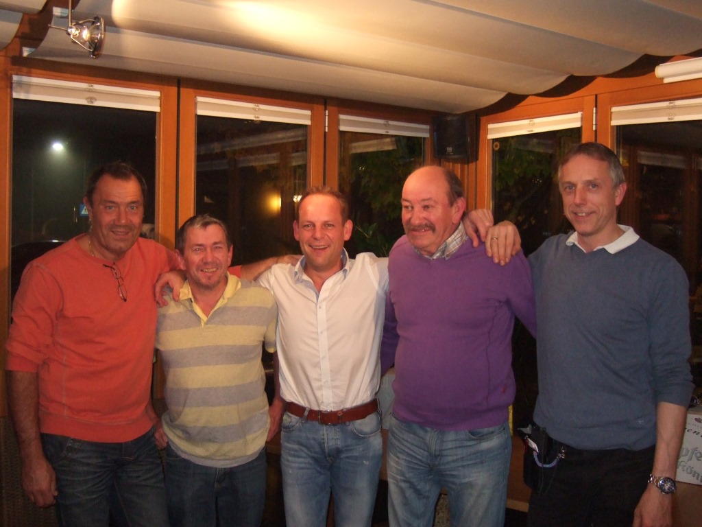 Foto v.l.n.r. Organisator Thomas Nagy, Andi Huemer, Marko Lebelhuber, Sieger Willi Kronberger und Gastwirt Franz Bauer.